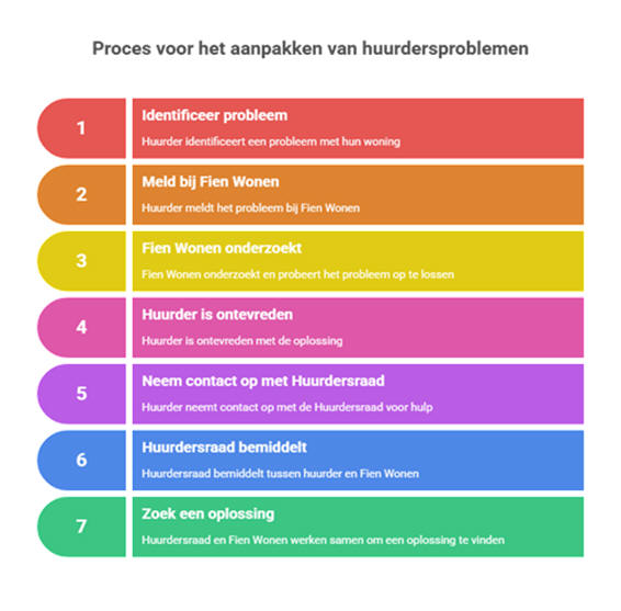 Heb je een klacht of probleem? Meld dit altijd eerst bij Fien Wonen, telefonisch of via hun website.