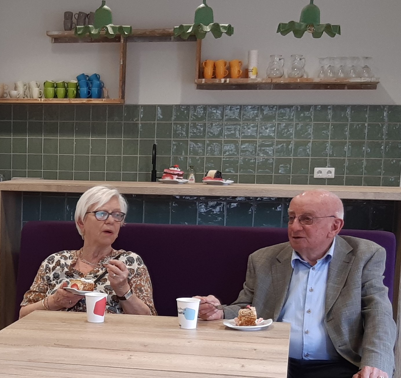 Op uitnodiging van Fien Wonen om het in het vernieuwde kantoor aan de Rijnstraat te vieren met een gebakje. Door diverse sprekers is Jan in het zonnetje gezet.